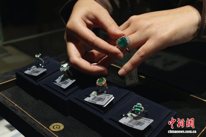 12月20日,“天心珍宝·人世华彩——20257彩云北绚丽残暴彩宝嘉韶华”正在北京落幕。正在为期9天的铺期内乱,大众将无机会远间隔浏览超越200件涵盖白宝石、蓝宝石、祖母绿等品类的珍贵黑色宝石及珠宝艺术撰着。图为不雅寡试戴祖母绿宝石戒指。中新社记者 赵隽 摄