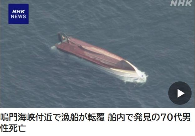 今日日原叫门海峡四周1艘渔舟颠覆,舟内乱别名70多岁男性逝世灭。